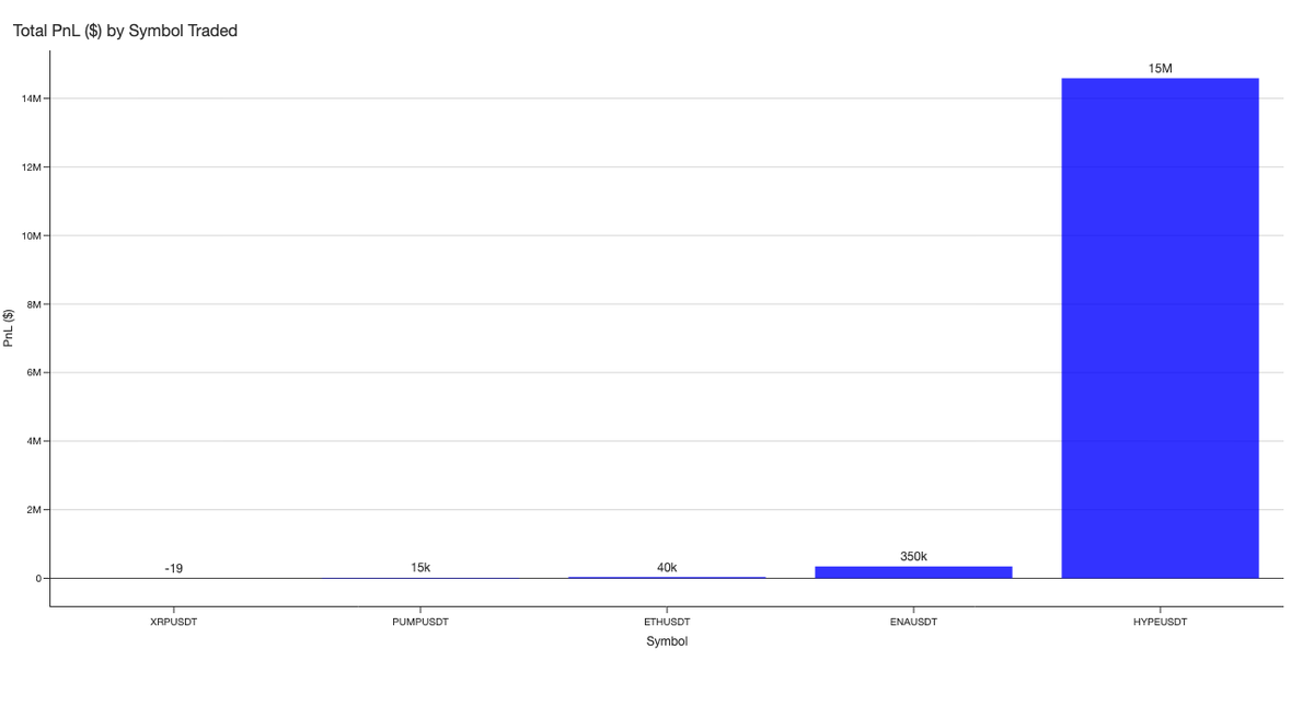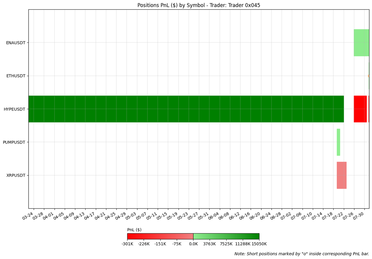 It accounted for virtually all of 0x045’s realized gains for the month, while the remaining symbols traded had negligible impact on his final PnL.
