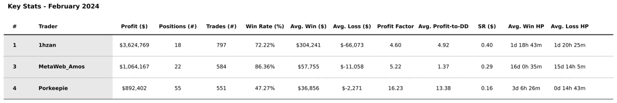 February 2024 unveils its elite trio of trading maestros as follows: