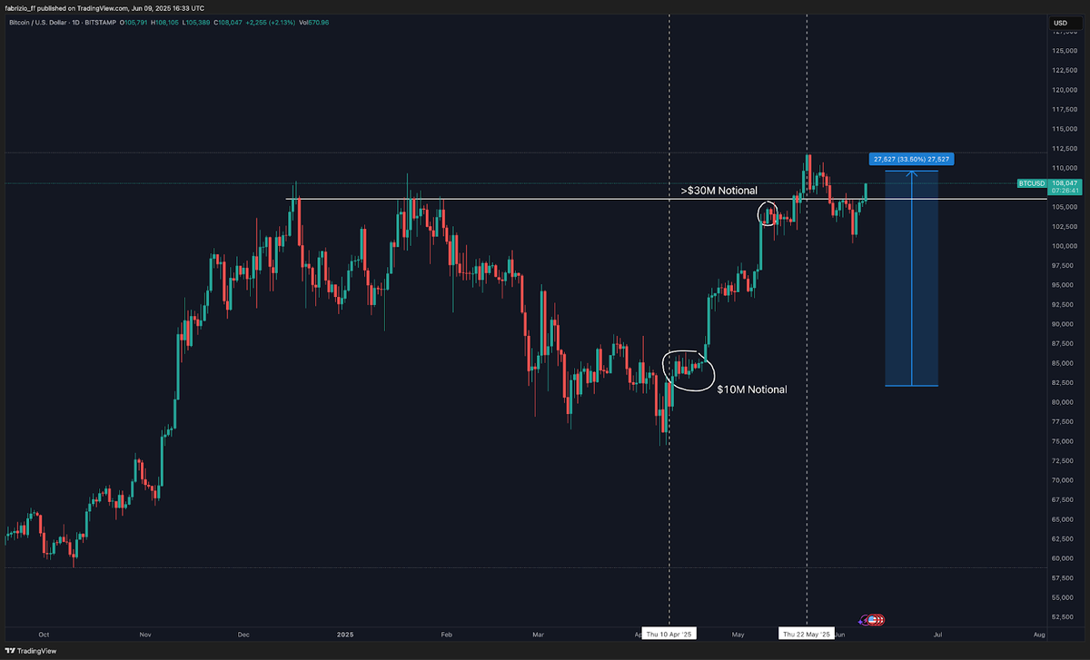 As shown in the image below, increasing the position brought his average entry to $100k, just below the May 12 low. This was a high-risk move. Had the level failed to hold, he could have lost the entire $2 million in unrealized gains. In the end, the trade played out successfully.