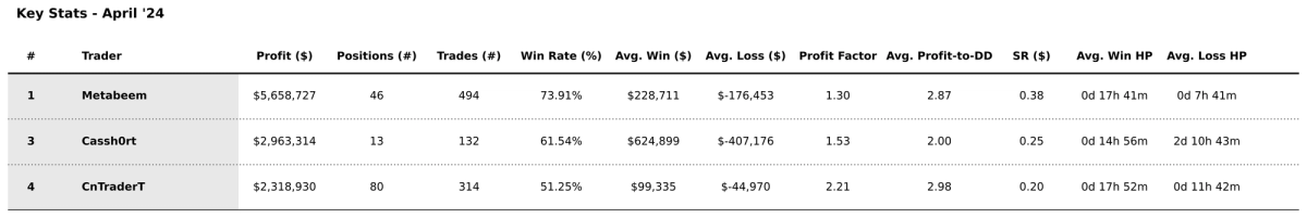 April 2024 highlights its top three traders as follows: