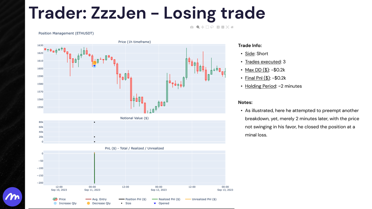 In Sep '23, he netted a PnL of $108k, majorly by shorting varied symbols.