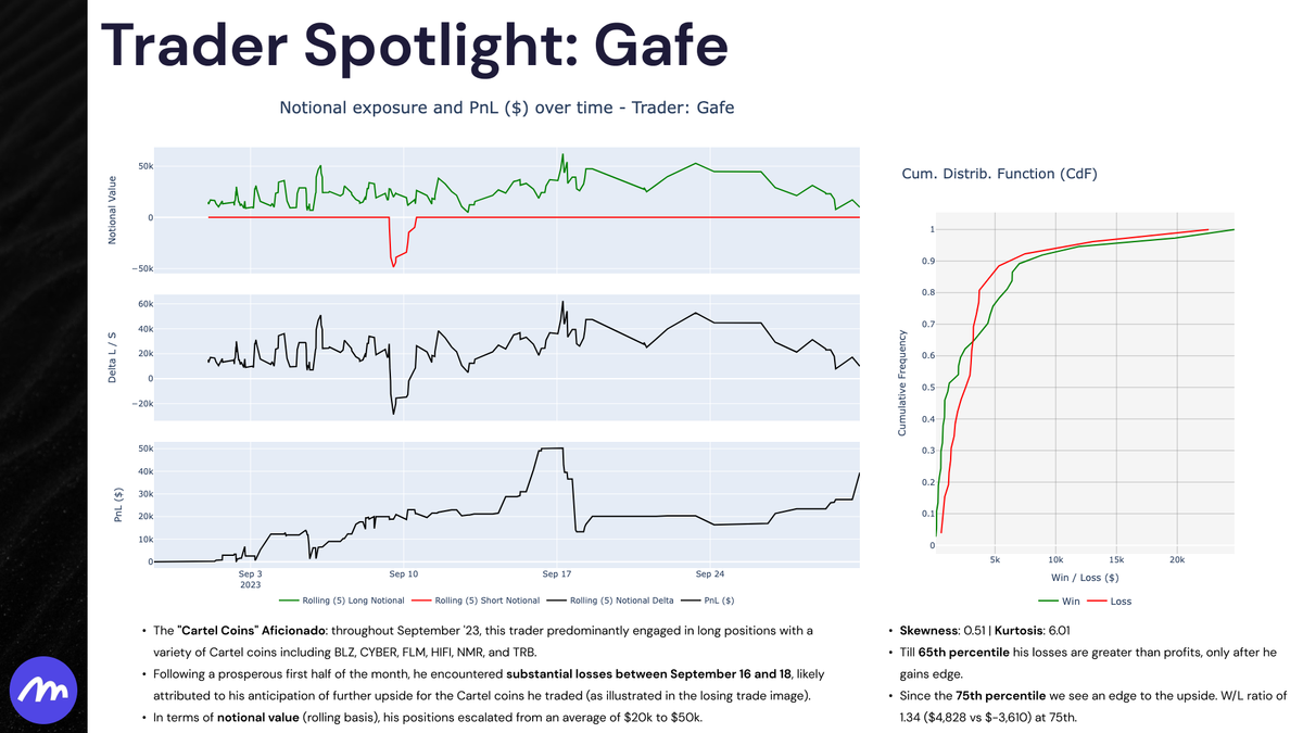 In Sep '23, this "Cartel Coins" enthusiast garnered a PnL of $39k, chiefly by taking long positions on a medley of Cartel coins like BLZ, CYBER, among others.